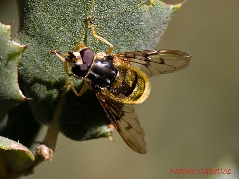 Después le toca el turno a la fauna de las jaras y los pequeños Quercus, algo más complicada de fotografiar. Primero, un sírfido del género Ferdinandea (creo):