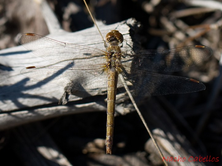 Después, en la zona más abierta, aparecen los ortópteros (saltamontes) y algún odonato (libélulas). Primero un Sympetrum (creo)
