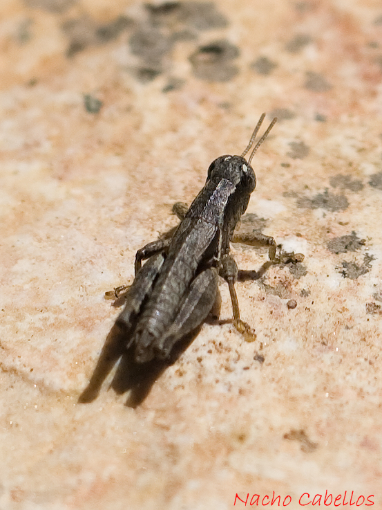 Una ninfa de Ocnerodes, unos saltamontes muy bonitos, ápteros, y difíciles de ver si no sabes lo que estás buscando