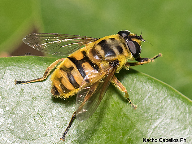 Identificación confirmada por Ana Cobo. http://www.biodiversidadvirtual.org/insectarium/Myathropa-florea-%28Linnaeus-1758%29.-img539785.search.html