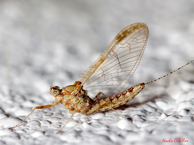 Es una de las especies más comunes y con más amplia distribución en la familia Baetidae. Tiene un par de características que la hacen bastante interesante; la primera, sólo posée dos alas funcionales para el vuelo, y la segunda, es la única especie ovovivípara de europa. También presenta un marcado dimorfismo sexual: las hembras tienen los ojos en los laterales de la cabeza, mientras que los machos tienen una estructura ocular en forma de «turbante» que hace que parezca que tiene otros dos grandes ojos en la parte superior de la cabeza. La larva puede aguantar todo el invierno en condiciones extremas en cuanto a la falta de oxígeno.