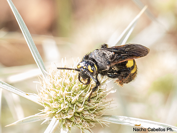 Identificada por Leopoldo Castro. https://www.biodiversidadvirtual.org/insectarium/Colpa-sexmaculata-(Fabricius-1781)-img1033744.html
