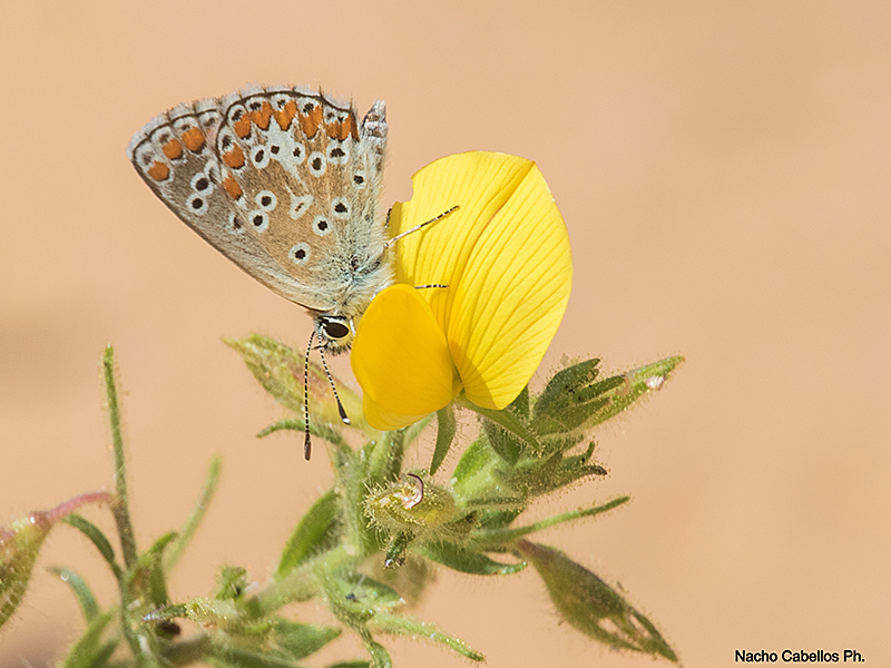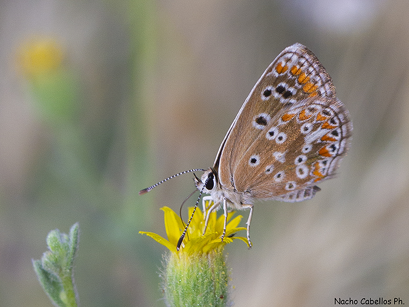 Uno de los licénidos más comunes en nuestro campo. El anverso es marrón, y el reverso punteado.