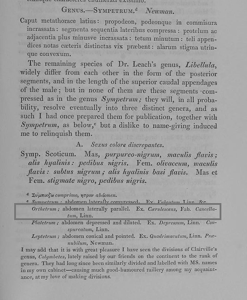 Newman, Edward. 1833. Entomological notes (continued from page 416). The Entomological Magazine 1(5) https://www.biodiversitylibrary.org/bibliography/173548