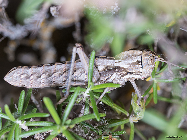 Es un Pamphagido propio de los romeros y endémico de la península, como muchas de las especies de esta familia. Solo lo he fotografiado una vez, en las lagunas de Ruidera, pero era bastante abundante en las matas en las que estaba presente; a pesar de su gran tamaño, no es fácil de ver.