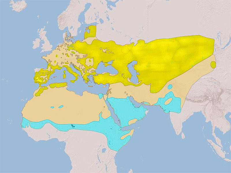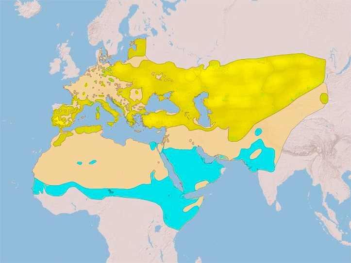 Es un ave estival que se puede ver desde mediados de marzo hasta principios de octubre, común en los prados del norte de España y restringido a las zonas montañosas en el sur. Pasa los inviernos en la franja central de África, Arabia, norte de la India y Pakistán, y los veranos en toda la franja que va desde el Mediterráneo hasta el centro de Asia.