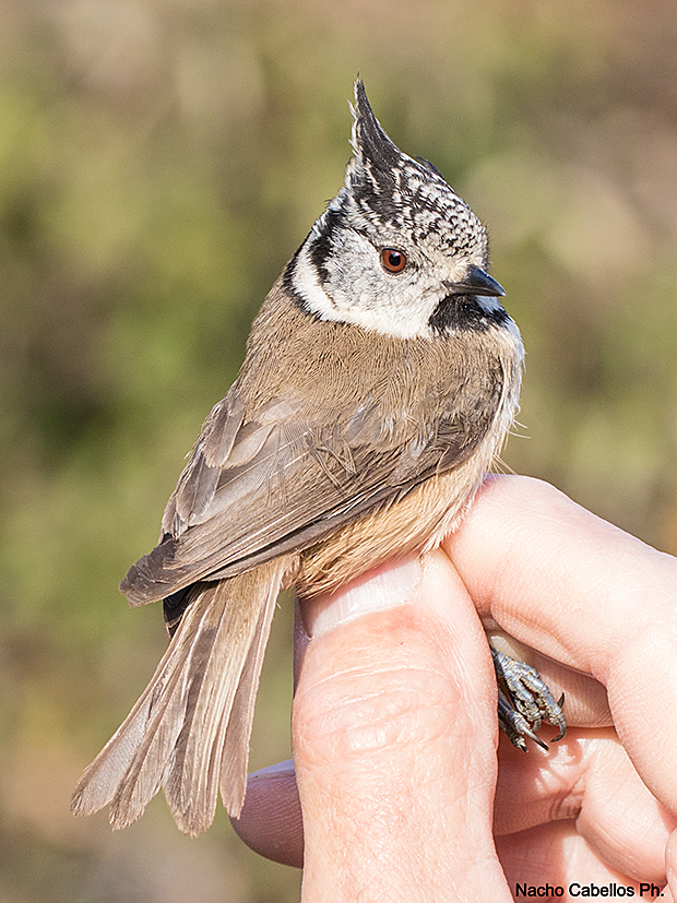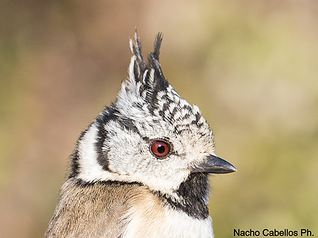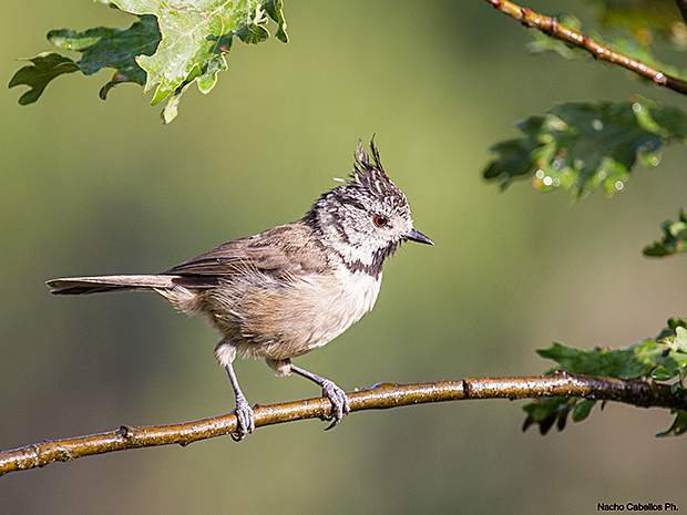 Herrerillo capuchino europeo. Inconfundible por su cresta; habita bosques en lo que haya presencia de coníferas, aunque también frecuenta robledales y encinares.