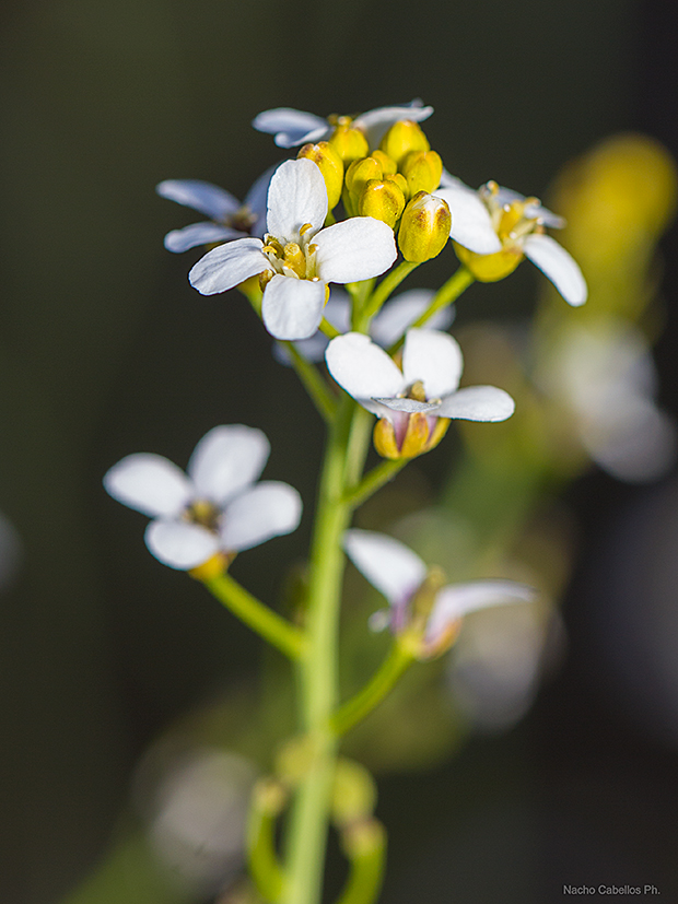 Calepina irregularis. Típicas flores con los pétalos en forma de «cruz»