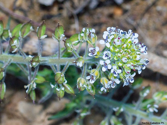 Lepidium sp. Se aprecian los frutos en silícula angustisepta y la inflorescencia terminal.
